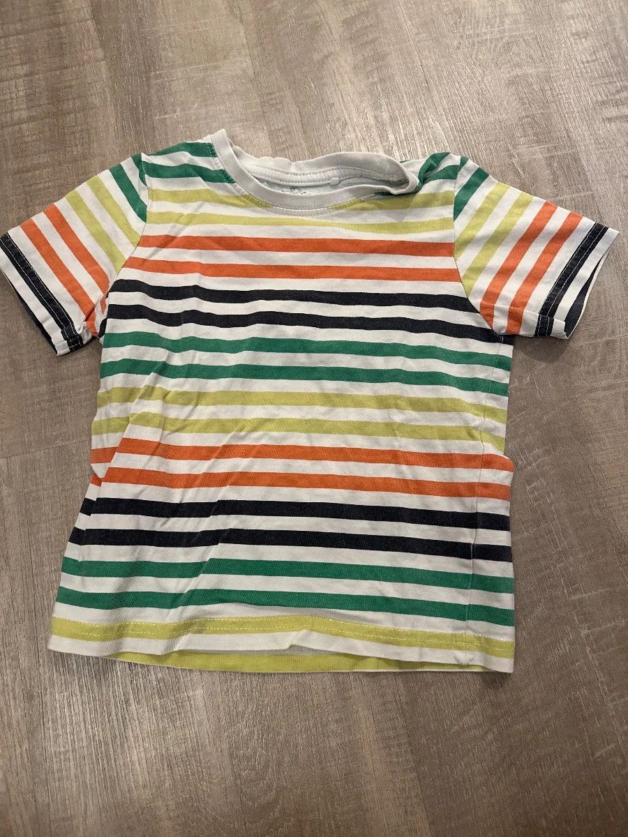 Dieses bunte Topolino T-Shirt für Kinder präsentiert sich in einem fröhlichen Streifenmuster. Gefertigt aus weichem Material, bietet es angenehmen Tragekomfort. Das Shirt befindet sich in gutem, gebrauchten Zustand.