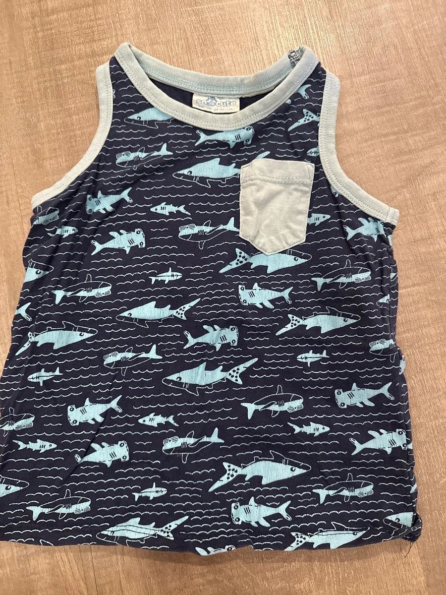 PrivatverkaufSo cute Tanktop T-Shirt Gr. 98 blau mit Haien